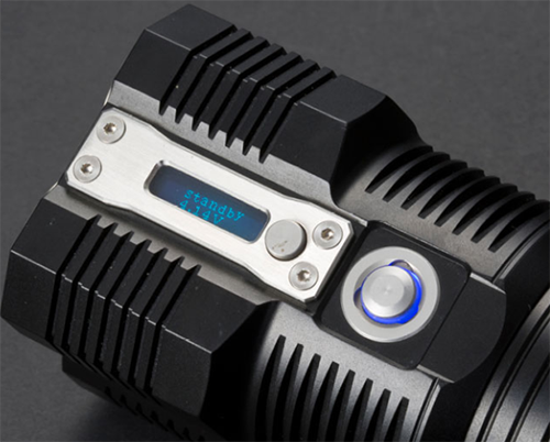 - Nitecore TM28 Tiny Monster har OLED display som viser lysstyrke, batterinivå, batterivolt, gjenværende batterilevetid, lommelyktens temperatur og ladeprogresjon