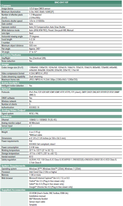 SNC-DH110T er et overvåkningskamera med ytterste kvalitet og anbefales på det sterkeste til alle overvåkningsformål.